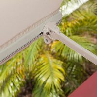 Los soportes, de acero colado en nuestros toldos exteriores Atos, son resistentes a la intemperie y están diseñados para cubrir grandes áreas. Las guías laterales y los soportes inferiores son en acero inoxidable lo cual nos permite para garantizar máxima resistencia en ambientes adversos.